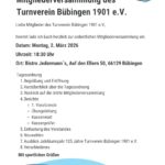 am Montag, den 02.03.2025, um 18:30 Uhr, laden wir euch herzlich zur ordentlichen Mitgliederversammlung in das Bistro Jedermann’s am Tennisclub Bübingen (Auf den Ellern 50) ein.